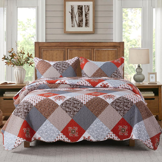 Quilt Set King Size - 3 Piece Microfiber Bedspread Reversible Coverlet Patchwork Bedding Set Ligh...