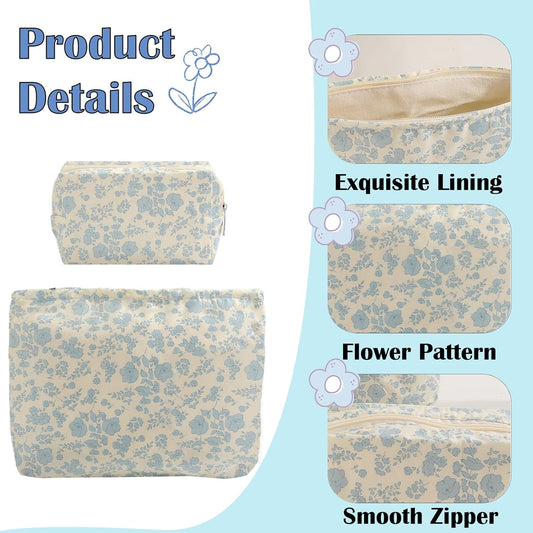 2PCS Floral Makeup Bag for Women,Small Makeup Bag Set Travel Toiletry Bag Coquette Cosmetic Bag B...